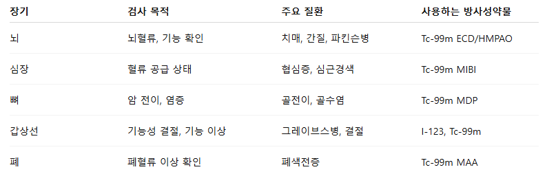 - 뼈 속에서 미세한 이상(전이, 염증 등)을 감지합니다.